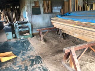 大工さんの所で、おが粉(プレーナー木くず)がたまったよ、と言う事でもらいに行く。