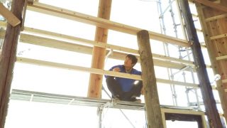 外壁を頑張ってはり付け中。