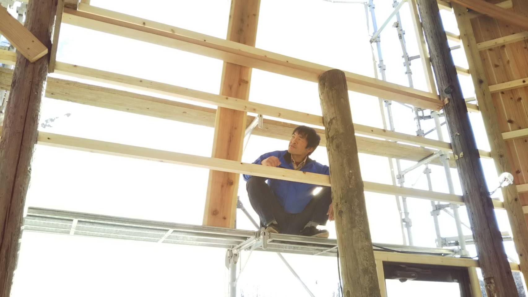 高所で考えるシンカイさん。