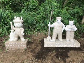 3年前の6月に志半ばで亡くなったエンドウさんの像。(左)