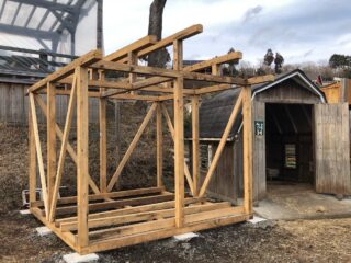 マツキお兄さんが、2頭の健康を守るため、小屋を建設中。