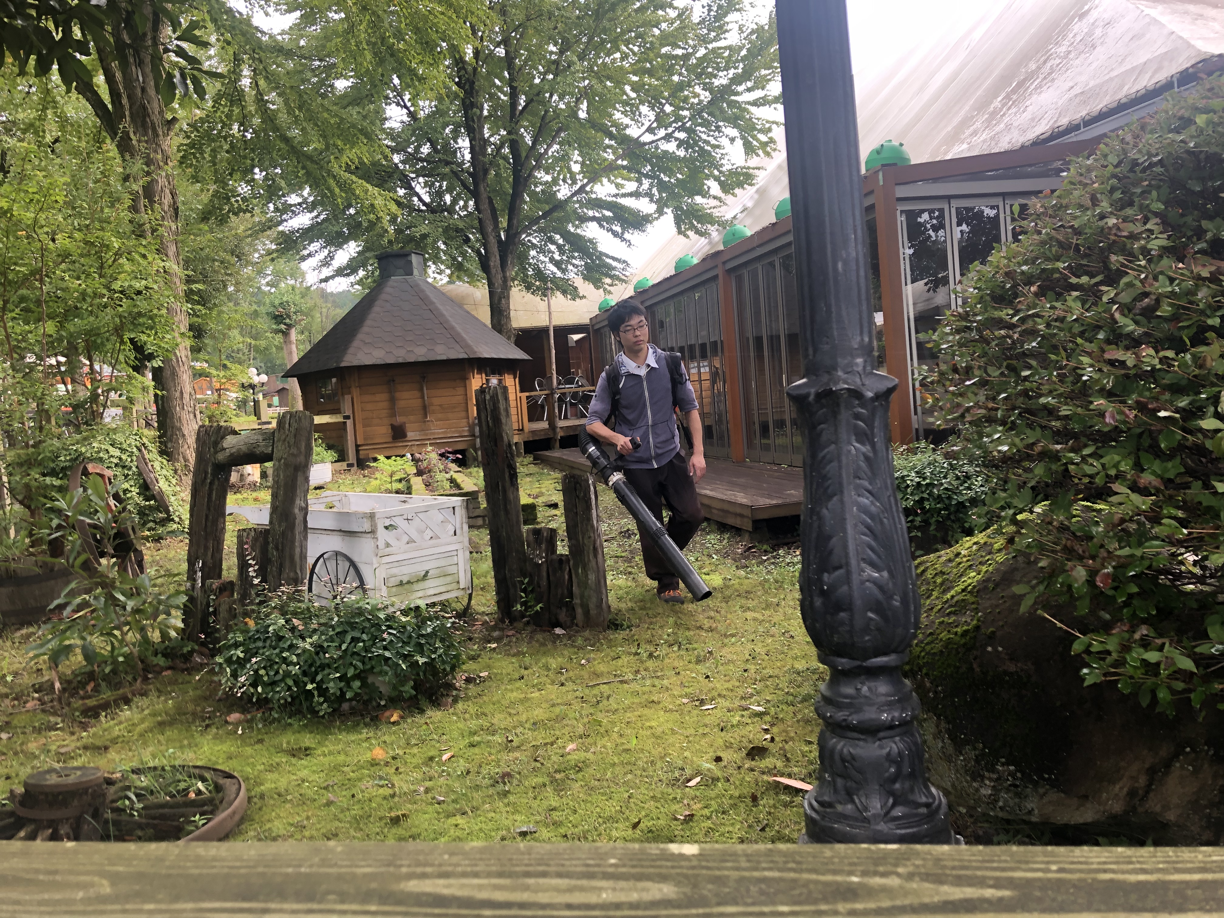 コバヤシお兄さん、ブロアーでの掃除を丁寧にこなす。