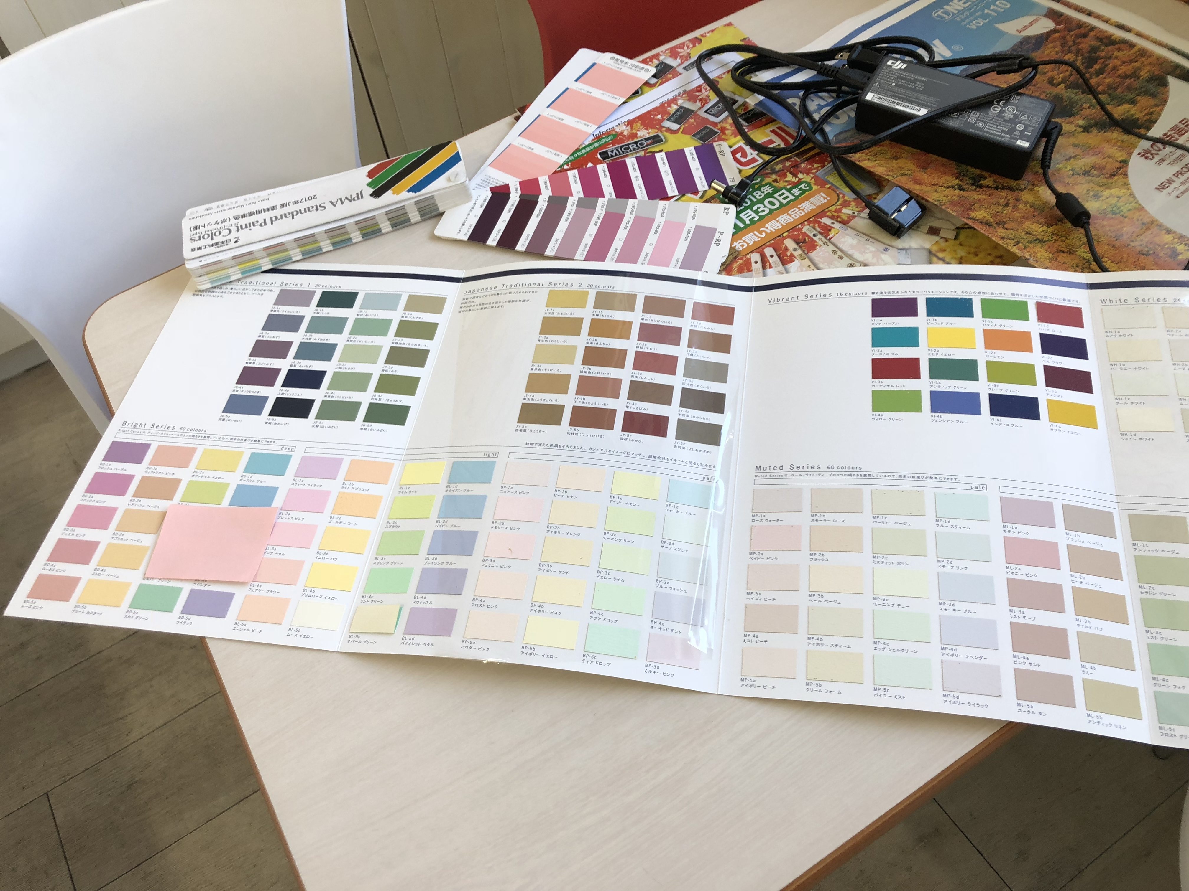 (手元に良い色見本がなく)色を伝えるのは、電話でもファックスでも無理なので、色見本を塗料屋さんに届けに行く。