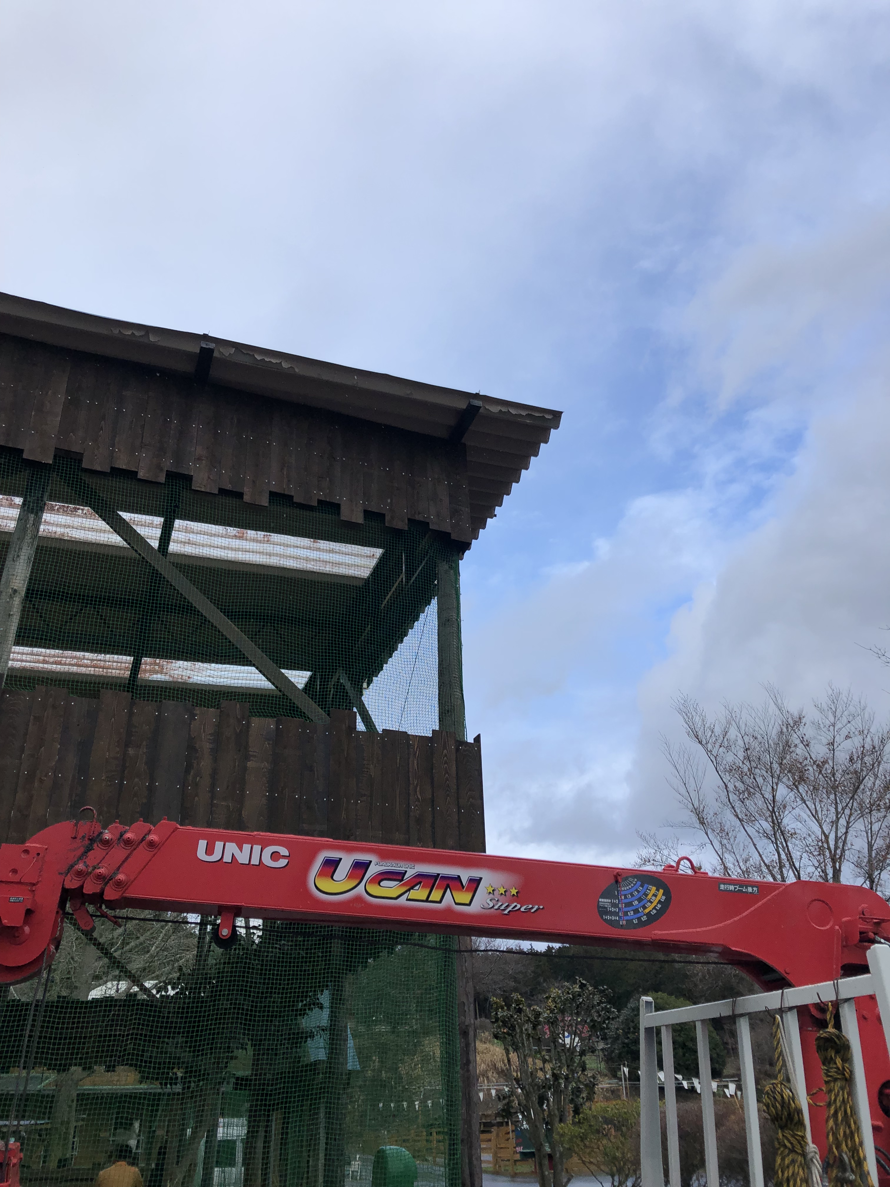 ヤギや羊を飼う小屋のキットを、大工さんが組み立ててくれております。
