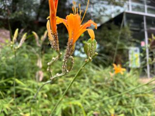 ニッコウキスゲに白い虫がびっしり(苦手な方、すみません(;^ω^))