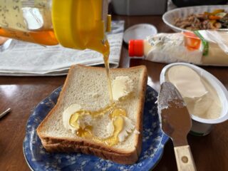 自分のハチちゃんたちから分けてもらった蜂蜜でパン🍞を頂く。