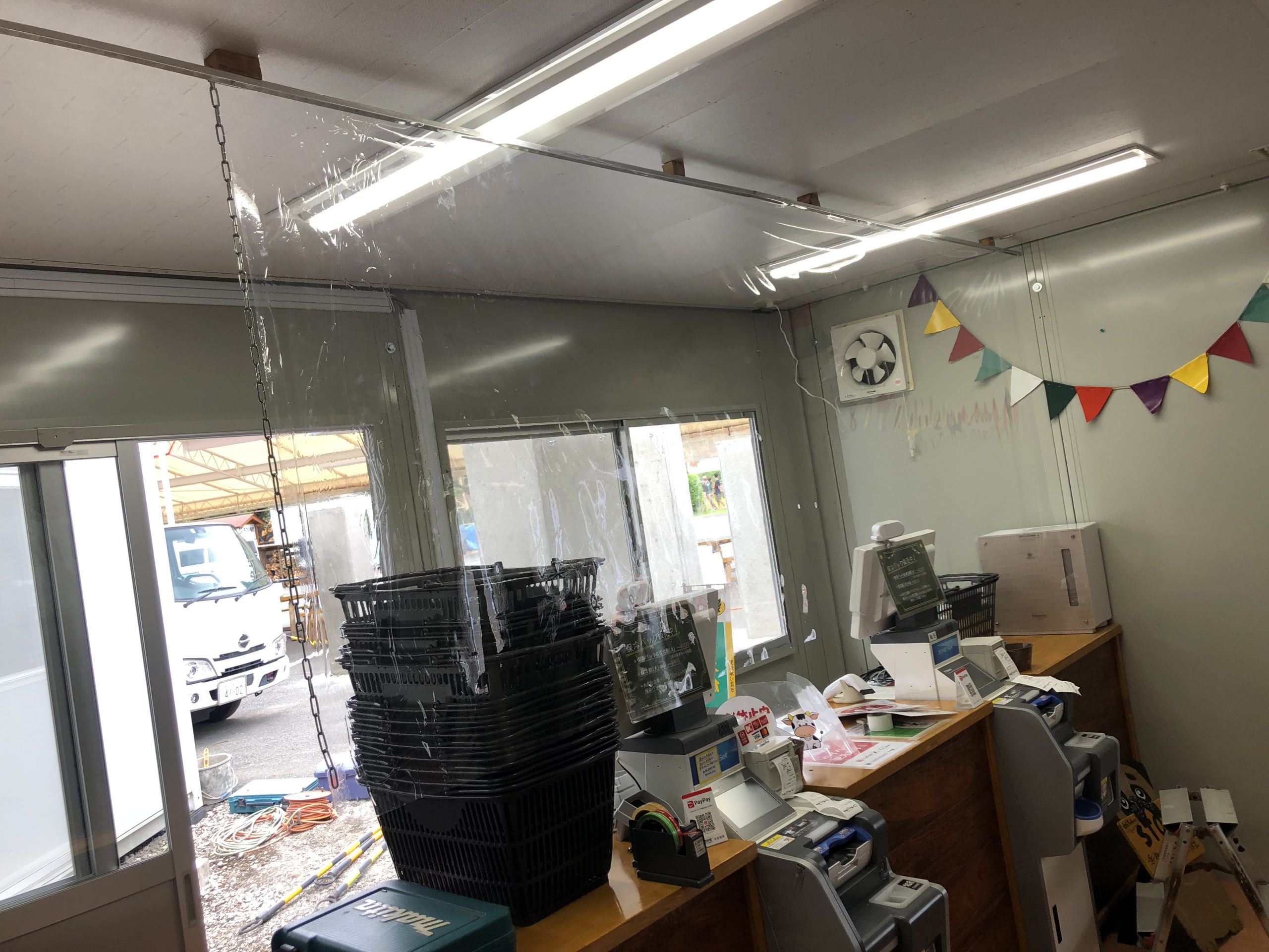 新しい売店のレジ上に透明ビニールシートをつける必要があったので
