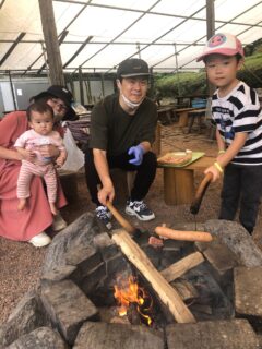 写真右のお兄ちゃんは、「うちわで炎を大きくする体験」をして、「焚き火の秘密」を学びながら