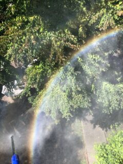 太陽が真上にある場合ならば、「高所から下向きにミストを出す」と、いつでも🌈が出ます。