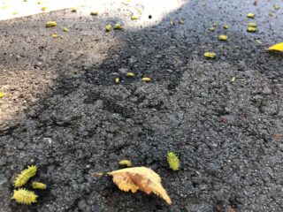 駐車場では、写真↑の様にイラガの幼虫(刺されるとすごく痛い)がポトポト落ちてきた場所もありました。
