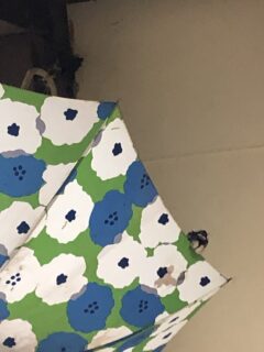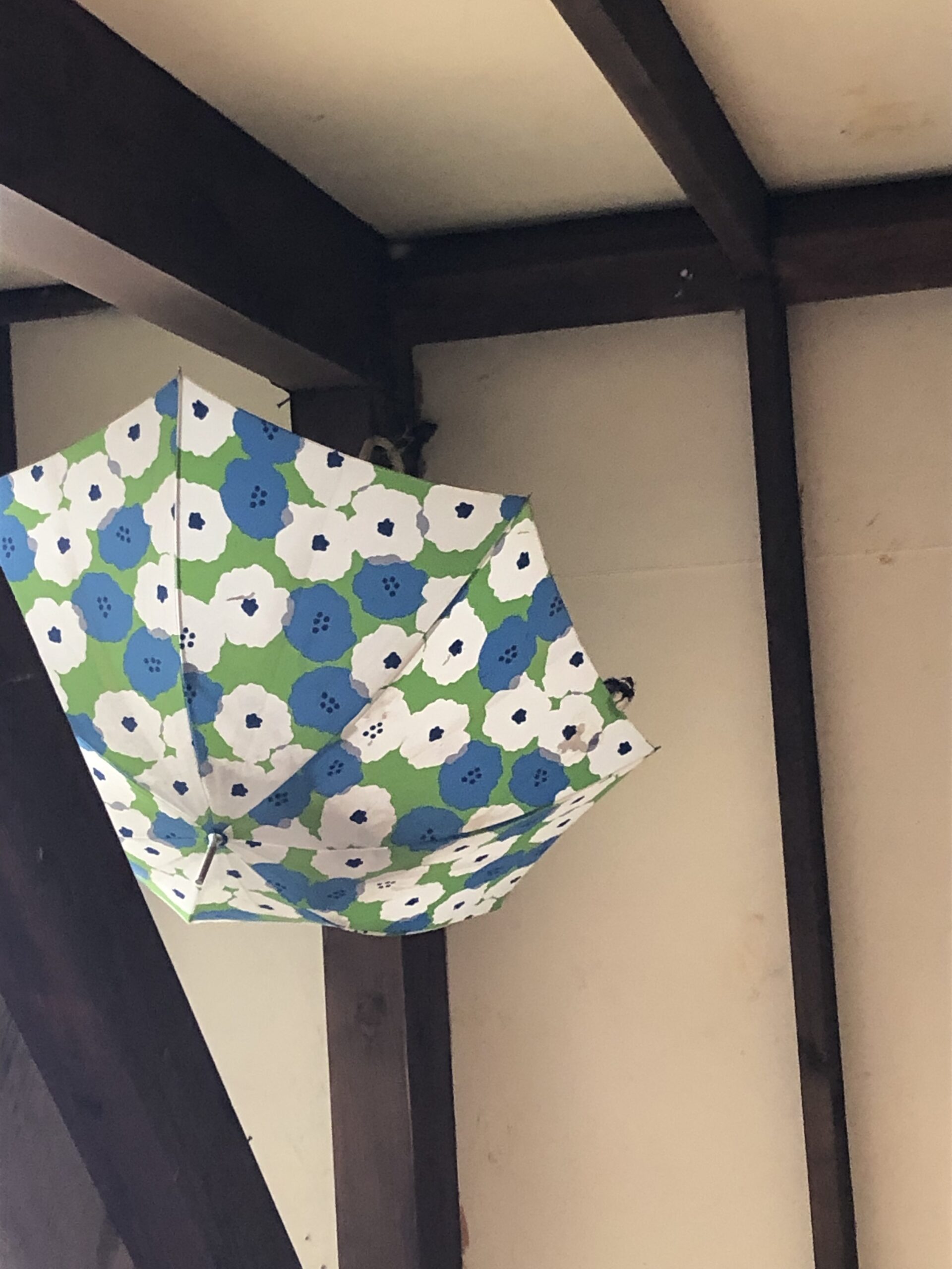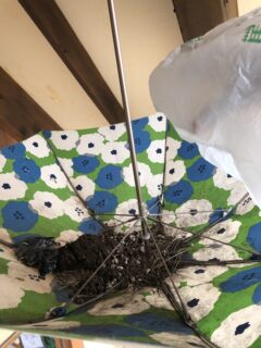 上を見たら、巣ごと傘の上に落ちていて、どうやら