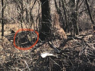 というか、「くくり罠」に捕まったシカ発見。
