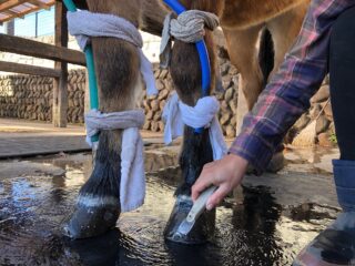 脚を冷やしながら、「馬の調子が良くなってきてよかったです~♪」とw