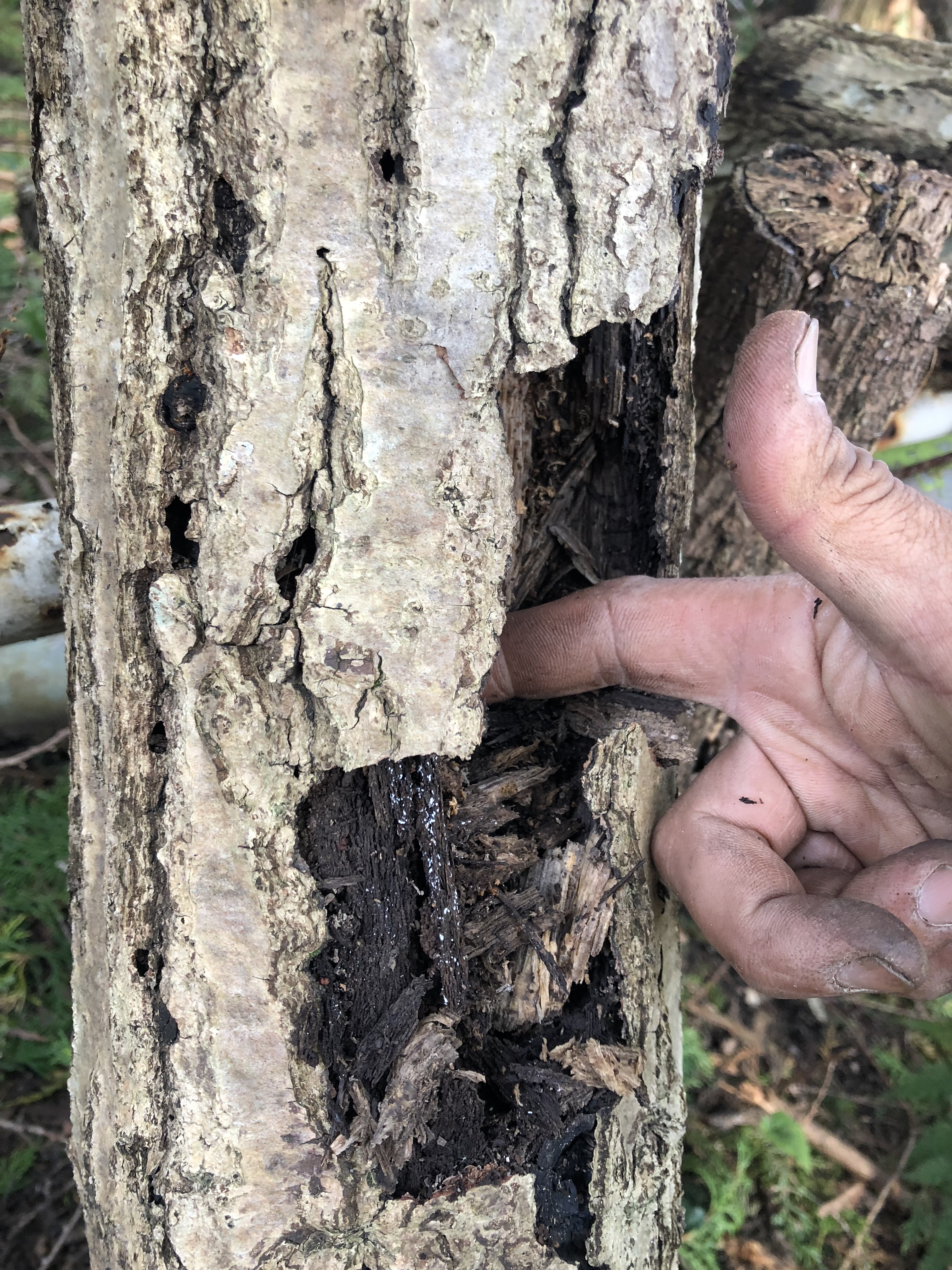 シイタケを完全に採り終わった木は、ここまで分解されます。