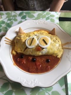 富士宮市市内のレストランで、チェシャネコのオムライスを頂く。