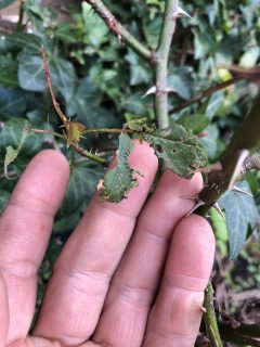 この時だけでも、イモムシ2種20匹くらいと、アブラムシが発生していました。