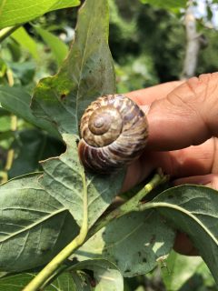 ブルーベリー畑にカタツムリ。大きい🎵
