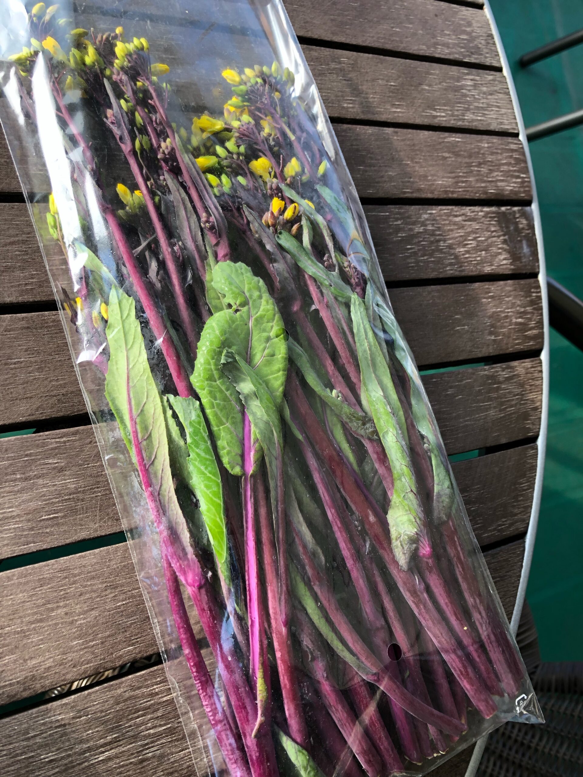 赤っぽい見た目は、サッとゆでると濃いピカピカの緑色になって・・・