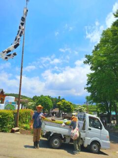 今、乳しぼり会場にウシノボリが揚がっているのは