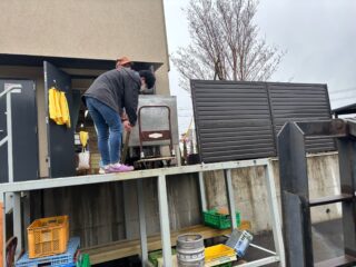 重たいコールドテーブルという冷凍庫みたいなものをフォークリフトで運びました。