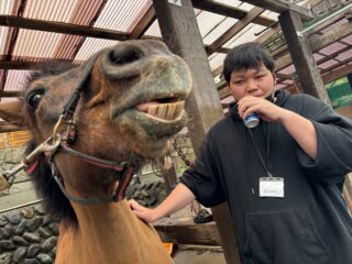 顔で気持ち良さを語るウマ、ツバキちゃん。