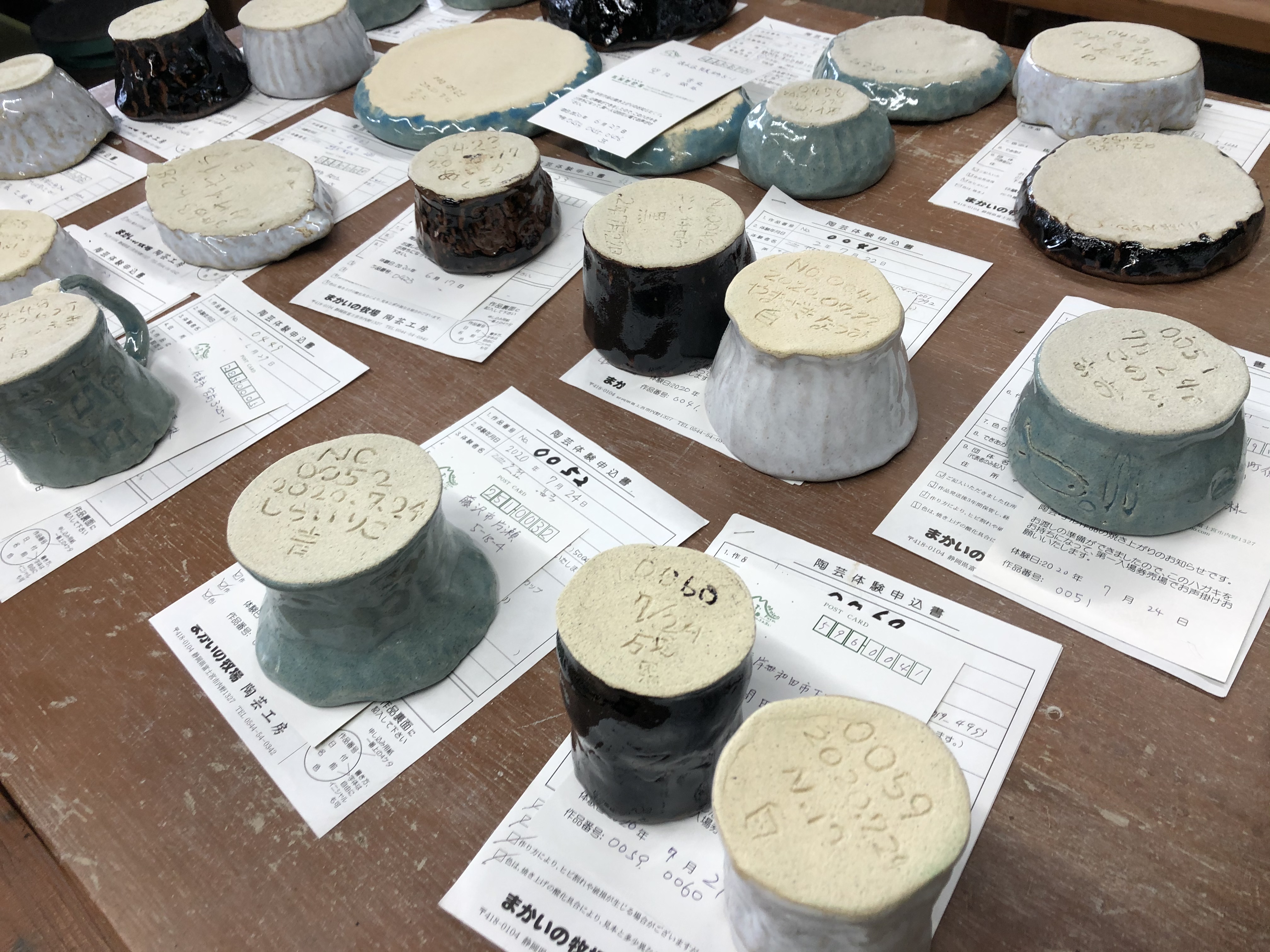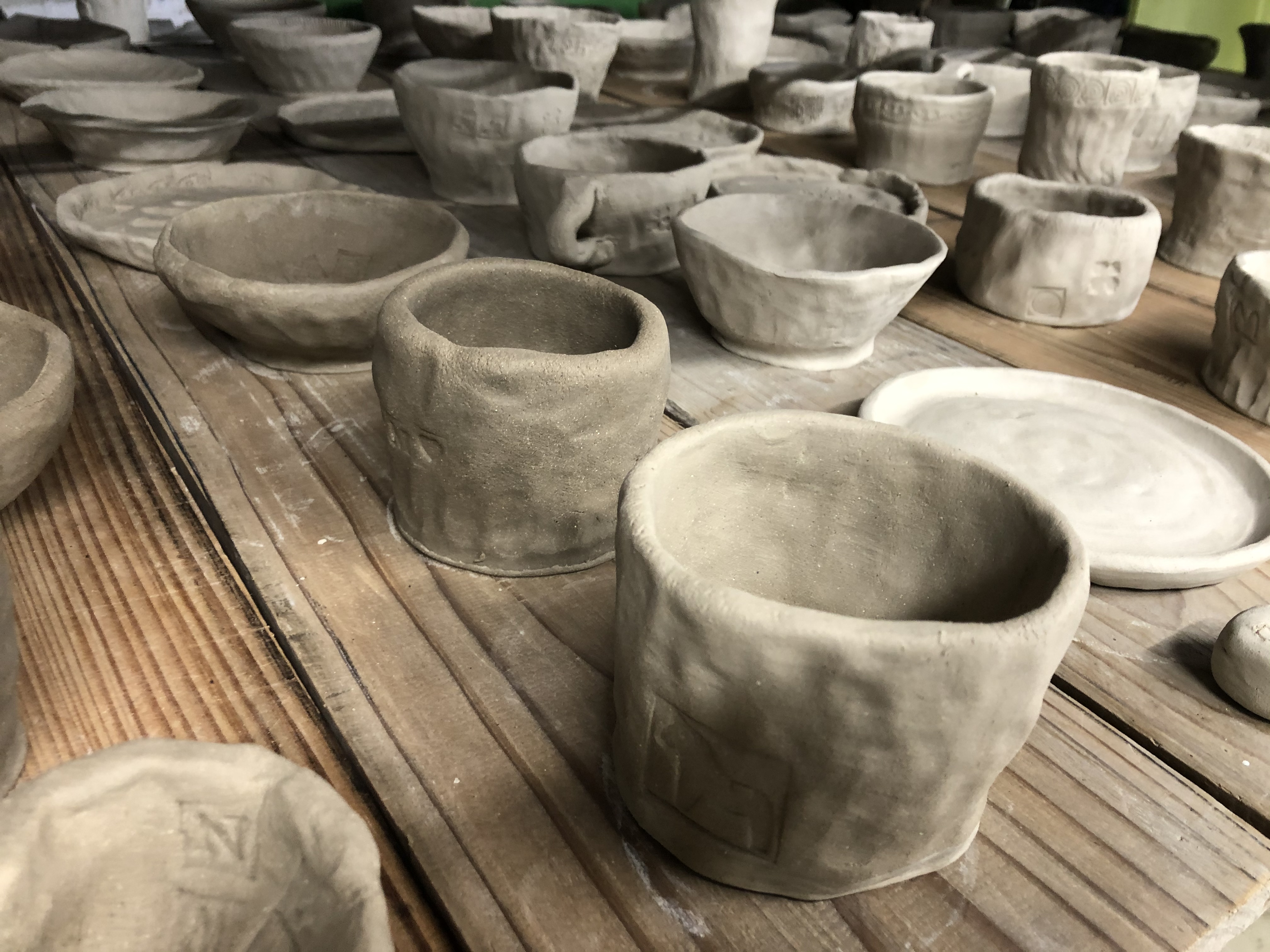 素焼き前の乾燥中の作品群。