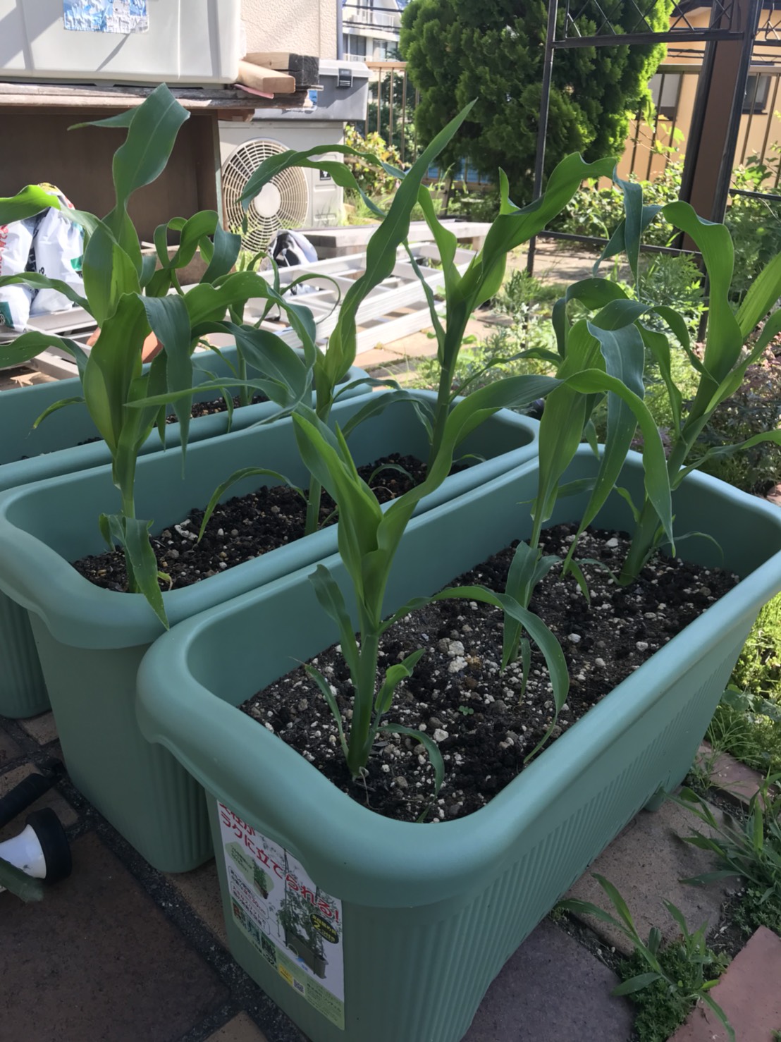 ダイチ君ちの(持ち帰った)間引きトウモロコシの育ち具合