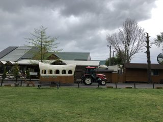 マルヤマお姉さんが、赤いトラクターの運転手になるべく勉強中。