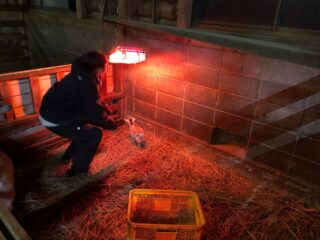 「仔山羊がちょっとゲリで、寒そうなので暖かくしてあげます」と。