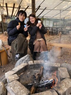 ミルクカフェ横の「青空テラス」で、たき火体験は 基本いつでもできます。