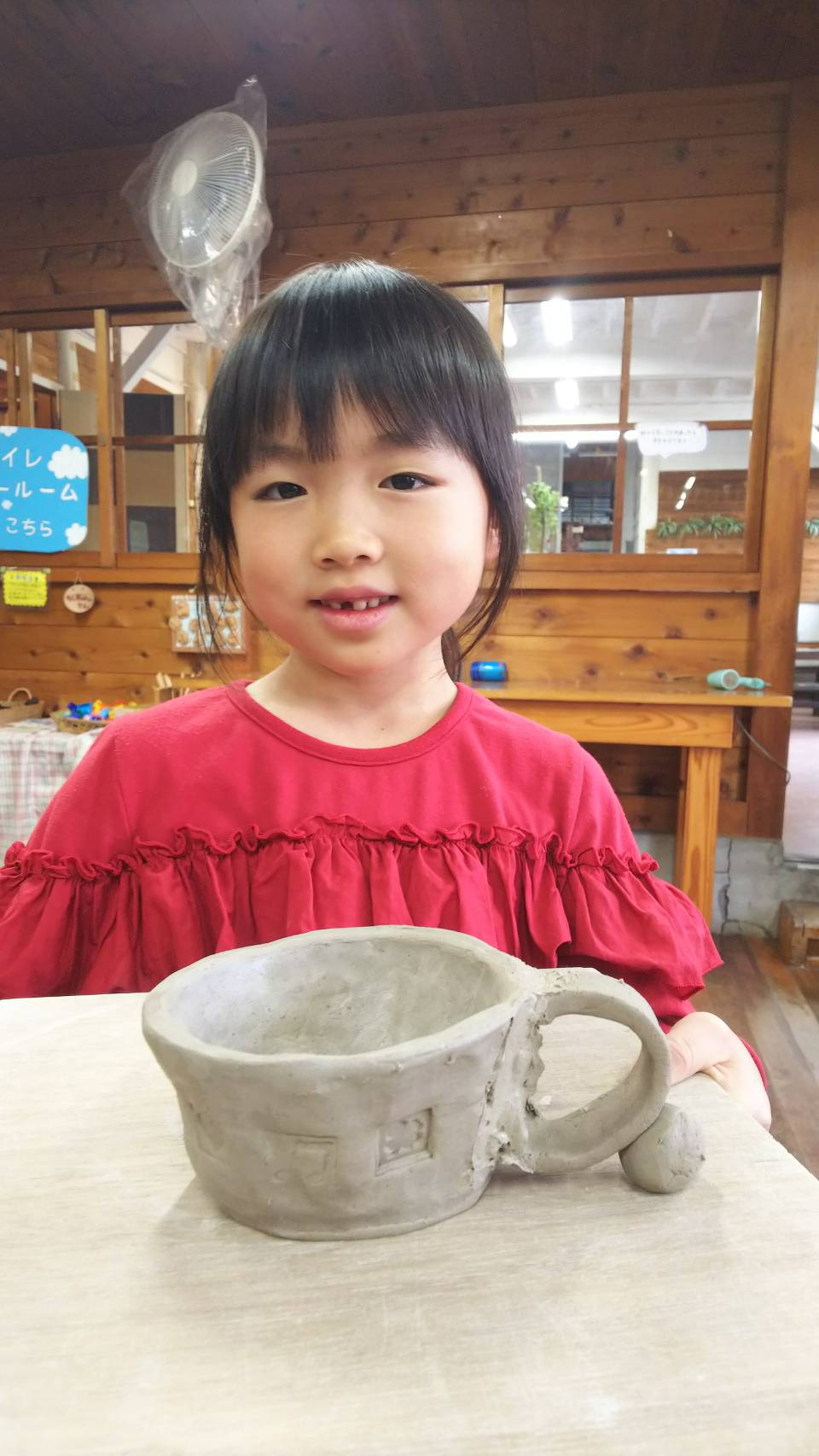 7歳のナナミちゃん、少し難し目の作品「取手付カップ」に挑戦!