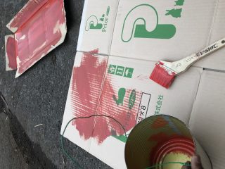 (しっかりハケに吸わせて、ダンボールや新聞に塗りつける事を)
