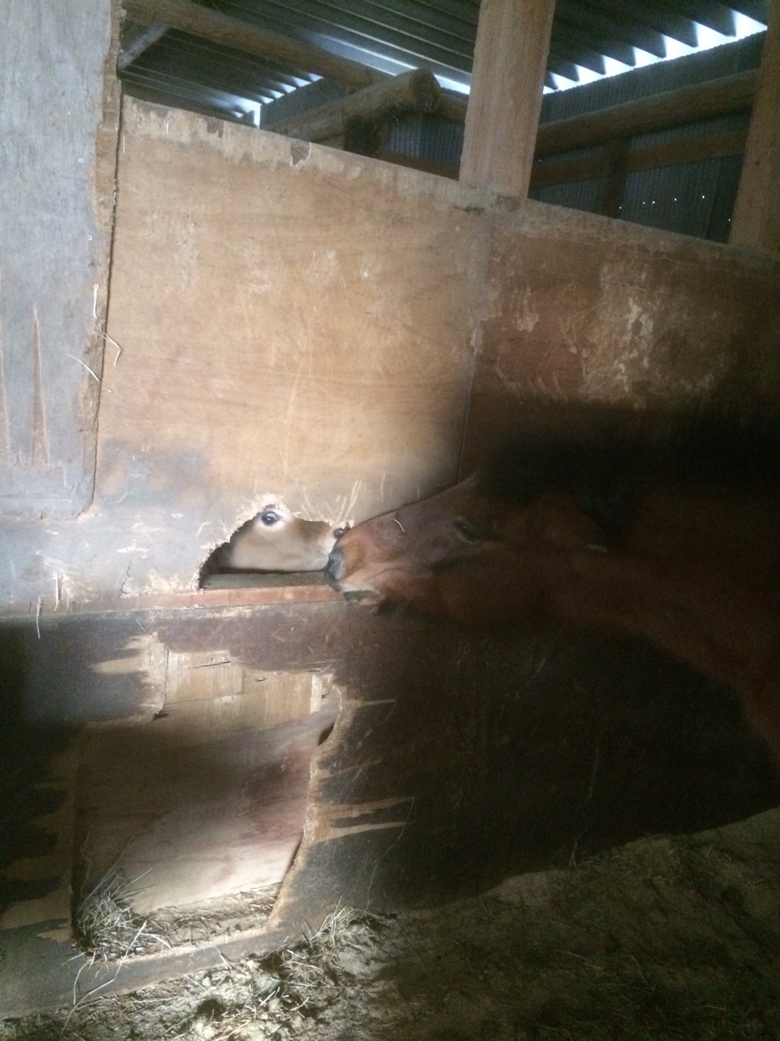 子牛と馬の出会い・・・