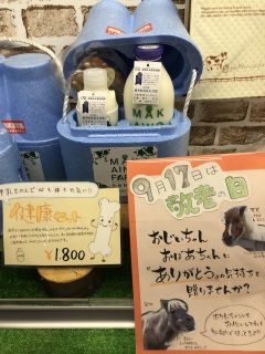 健康に良い、牧場らしいセットとして「まかいの牧場牛乳」「飲むヨーグルト」「燻製チーズ」などを、牧場オリジナル容器にセットにした【健康セット】が売店に登場!