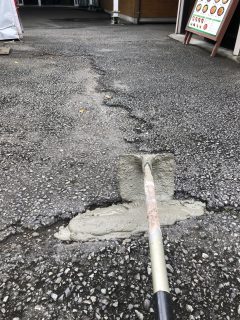 アスファルトの危険な穴をふさぐべく、コンクリートを練る。