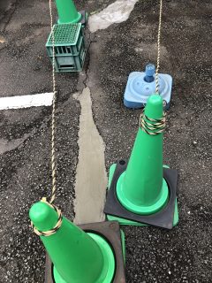 作業中、緑色のコーンを3つ、ピッタリ上に置いておいたら、