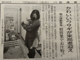 1月4日、郵便局に馬飼野牧場のウサギが2羽おでかけして