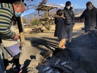 たき火で焼き芋を作ってみる体験、本日は