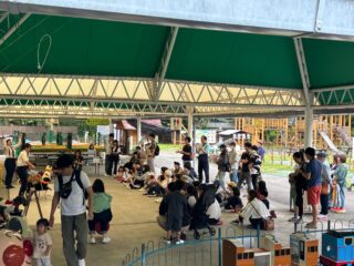わんわんサーカスさんは、遊具の屋根下で開催!