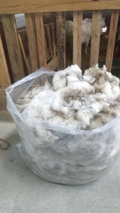 この毛は、ウール工房にて手でほぐしながら、まず汚れを取り除き、