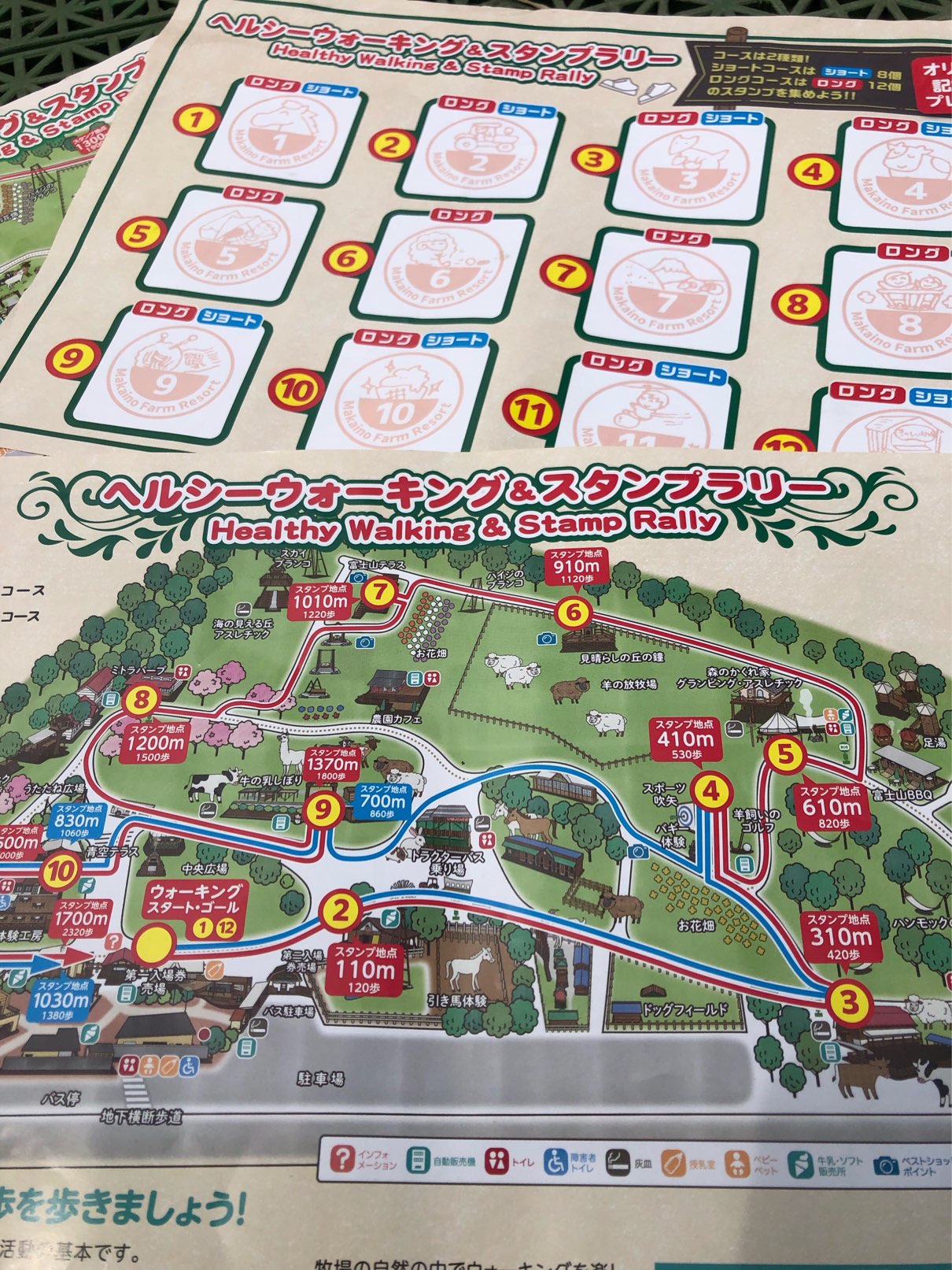 まかいの牧場のスタンプ系の催しは、「リアル宝探し(byタカラッシュ)」と「ヘルシーウォーキング」の2種類。