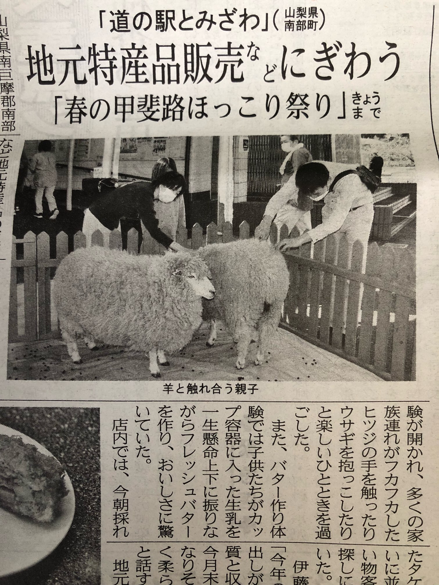 新聞に、先日の馬飼野社長が羊2頭(ナギちゃんとヤマナちゃん)を連れて行ったことが紹介されていました。