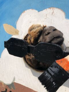 ※内側には塗っていないので大丈夫。それも、ポン君だけはもともと顔が白黒だから、きっとペンキついちゃっても・・・大丈夫👍