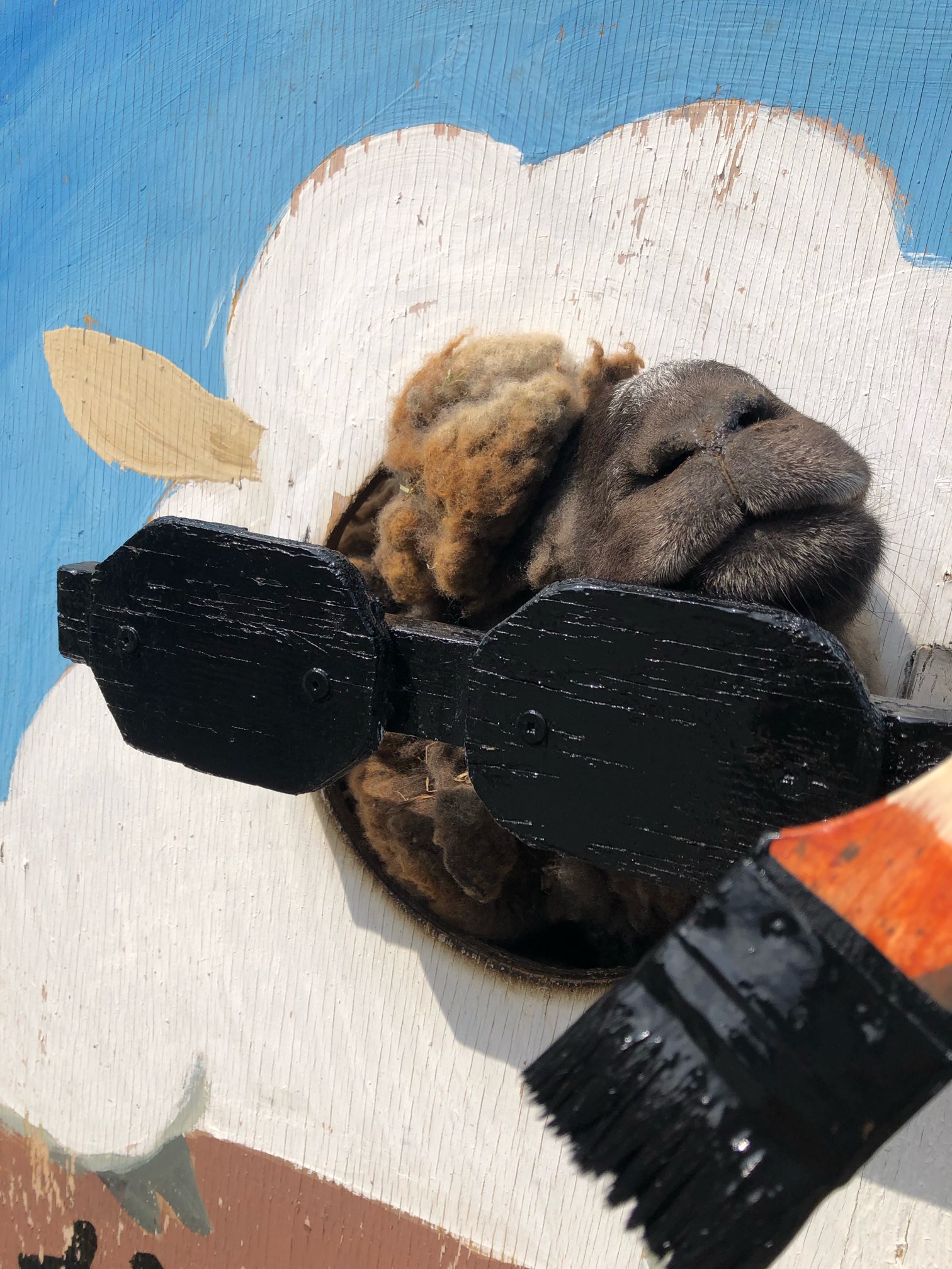 ちょうど最近気になっていた、トダお姉さん作の「羊のカオダシ」のサングラスを塗る。
