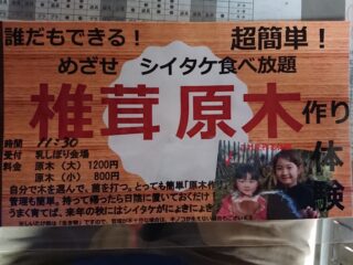 ほだ木の大きさに応じて「大1200円・小800円」にて、コマ菌を打ち込んで、お持ち帰り。