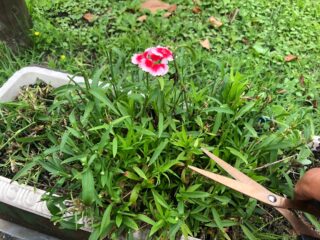 ナデシコの花が枯れていたので、ハサミで枯れた部分だけを