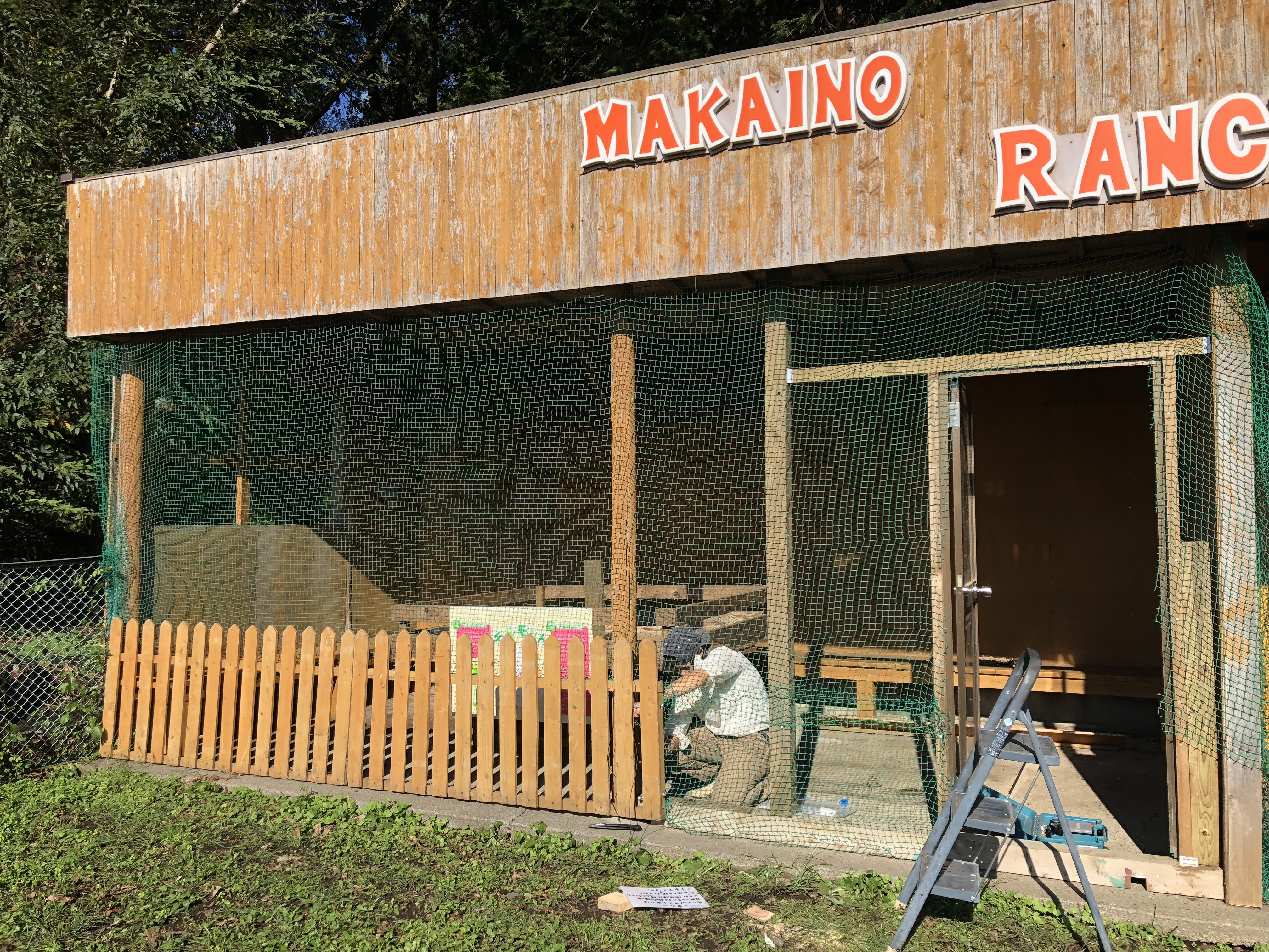 台風で壁も屋根も吹き飛んだモルモットのふれあいコーナー「モルモット村」。