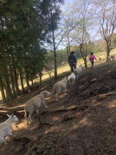 羊たちと、ぞろぞろ放牧場へ出てゆく楽しい催し、今日はできるが、明日日曜日は雨でできなさそう。