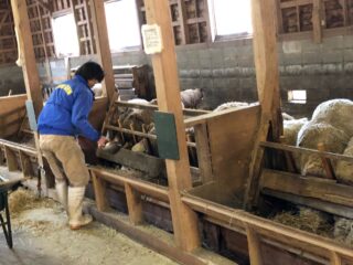 昨日は馬班のオシオお兄さんが、羊たちにエサをあげておりました。