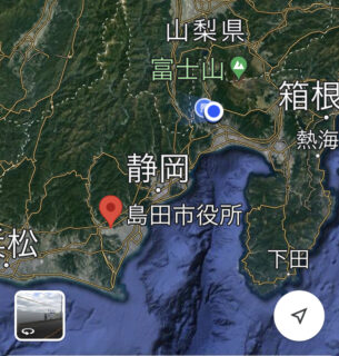 島田市(富士山頂から70㌔「赤いマーク」)から撮った場合とこんなに違うのですね。
